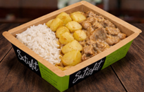 150 g de strogonoff de carne, 140 g de arroz branco e 40 g